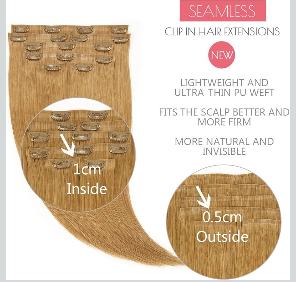 Loxxy Clip in Hair Extensions 14inch Strawberry Blonde Seamless Hair Extensions Clip in Human Hair Ultra Thin PU Weft Real Remy Human Hair Extensions Natural Silky Straight 7Pieces